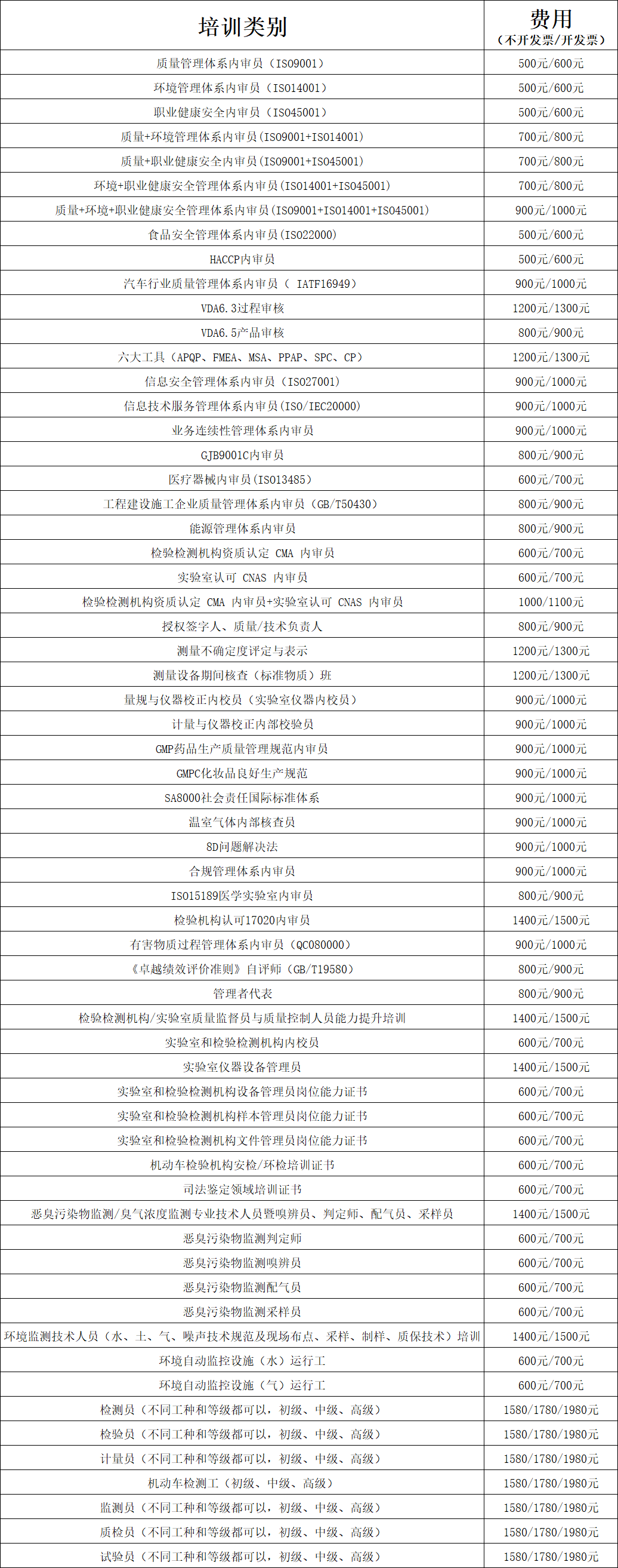 越来越多的组织积极采用先进的管理体系标准, 并期望提升内部审核员的整体素质, 使内审员真正达到能审、 会审并能寻找出企业存在的问题, 使企业建立起管理体系的自我完善机制, 寻求体系改进的机会, 为了满足广大企业和个人了解管理体系相关知识,本中心常年在北京、哈尔滨、长春、沈阳、大连、济南、青岛、苏州、南京、上海、杭州、宁波、合肥、武汉、广州、西安、郑州、成都、重庆、天津等地举办质量管理体系内审员、环境管理体系内审员、职业健康安全管理体系内审员、食品安全管理体系内审员、IATF16949内审员、医疗器械内审员、信息安全管理体系内审员、信息技术服务管理体系内审员、能源管理体系内审员、各种职业能力水平评价(如:检测员、检验员、计量员、监测员、质检员、试验员等)培训班。亦可根据企业需求,提供上门内训服务。