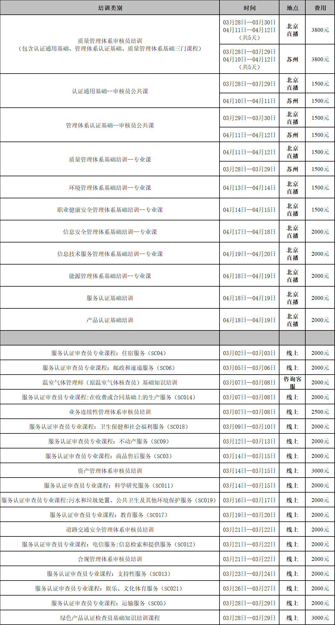 备注:审核员面授课程随时更新。