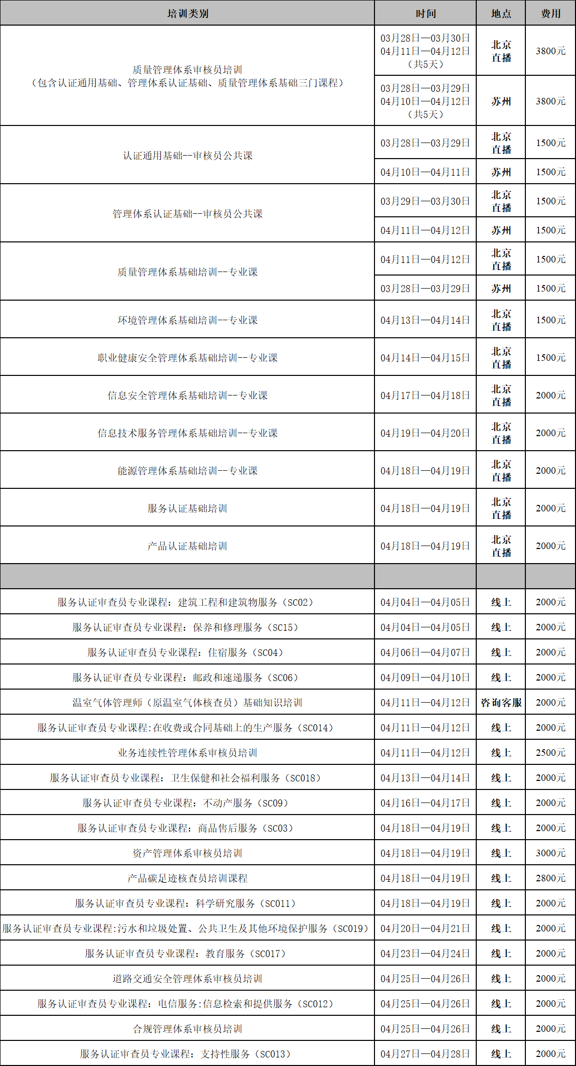 备注:审核员面授课程随时更新。