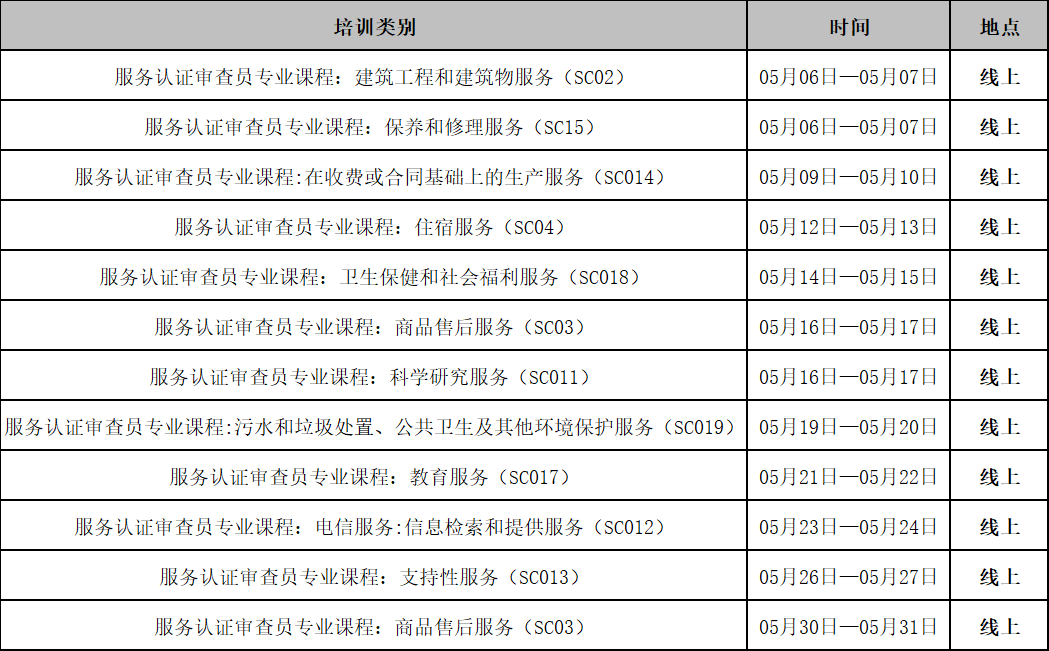 为满足认证人员学习和掌握服务认证的相关知识,满足服务认证审查员的专业能力要求,按照中国认证认可协会(CCAA)《服务认证审查员注册准则》要求。我单位将举办“服务认证审查员专业知识培训课程”,现将培训相关事宜通知如下:
