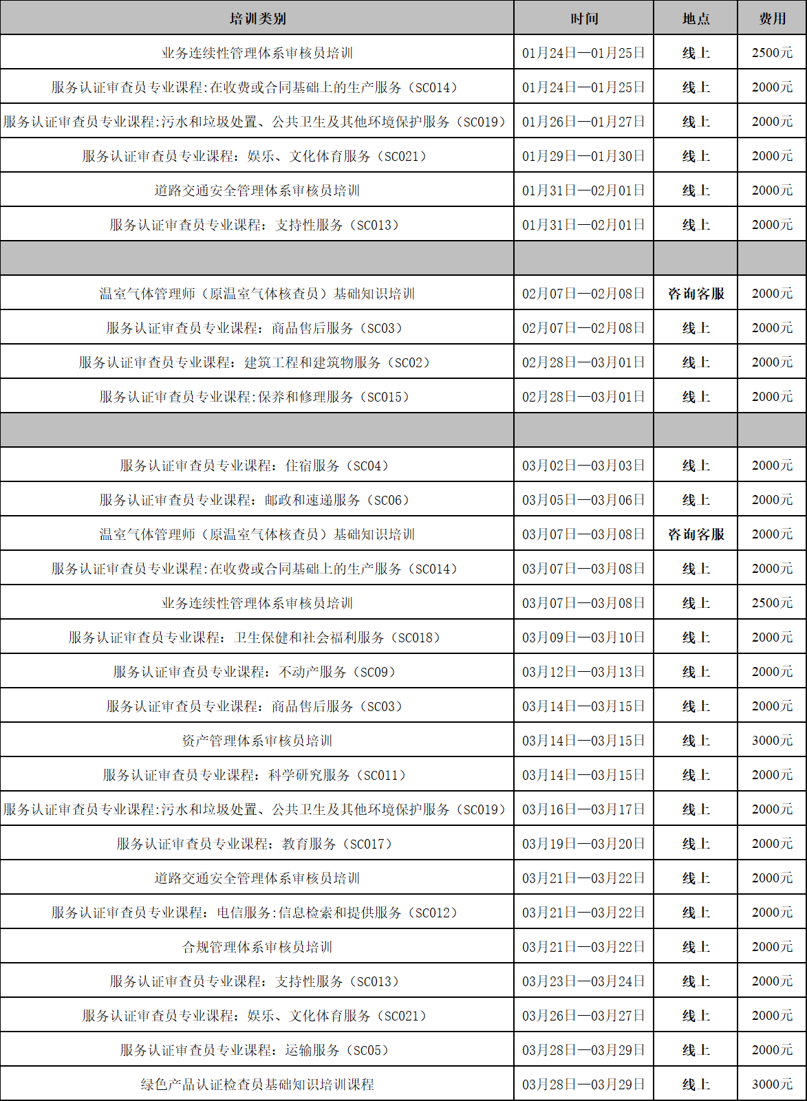 比如:报考质量管理体系审核员,需要培训:认证通用基础+质量管理体系基础+管理体系认证基础;